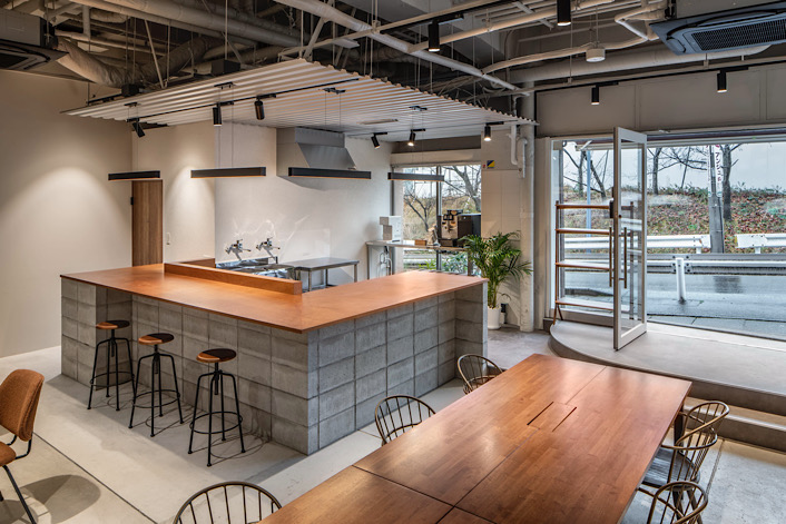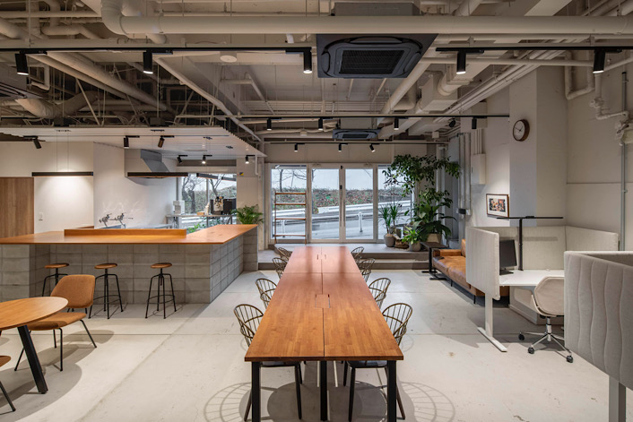 オフィスは、かつて星ヶ丘自動車学校が所有していたガレージをリノベーションして設立。駅から徒歩5分程度という利便性も備える。